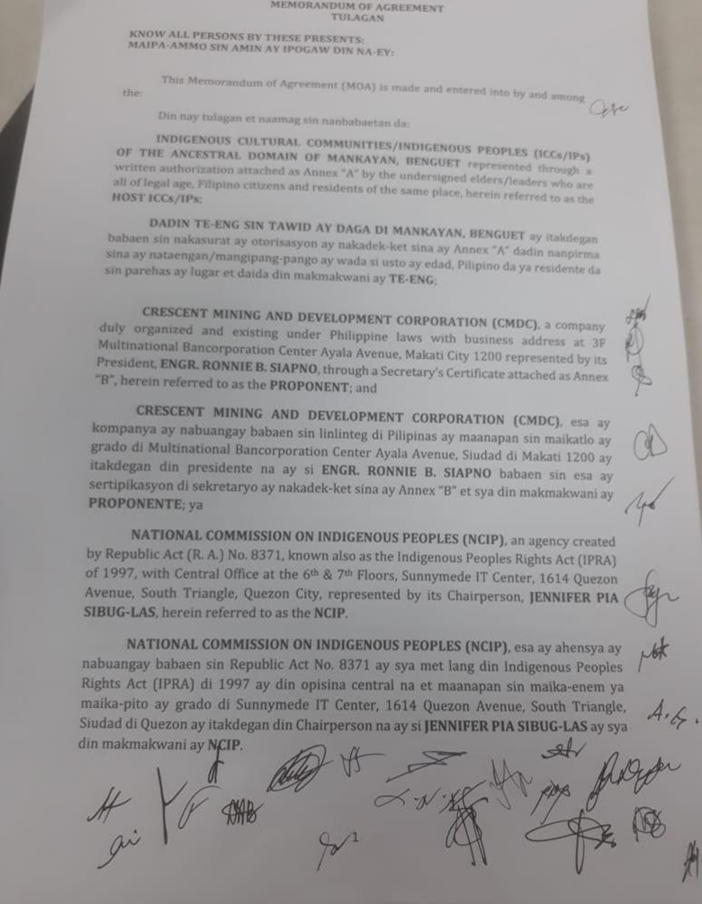 - Meeting of Council of Elders (CoEls) with the Chief Spokesperson was held last Dec 17 in preparation for the MOA signing between CMDC and the Community.