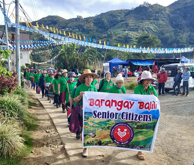 Barangay Balili Senior Citizens wearing their uniforms donated by CMDC.