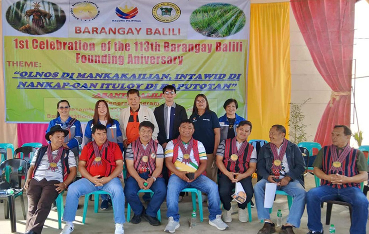 Ranin, CEXCI Comrel team, and CMDC Comrel Mngr. Myrna Basanes. Sitting, from left to right: Balili Barangay Captain Jerry Balong-angey, Mayor Cesar Pasiwen, Kag. Jestoni Balong-angey, SB Lloyd Luspian, SB ABC Mr. Batane and SB Munoz.