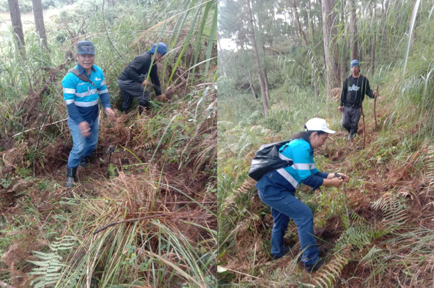 CMDC CFs Mr. Nestor Gundayan (lower left) and Ms. Annie Lawagan (lower right) joined the tree planting activity of Mankayan Tawid Transport Cooperative.
